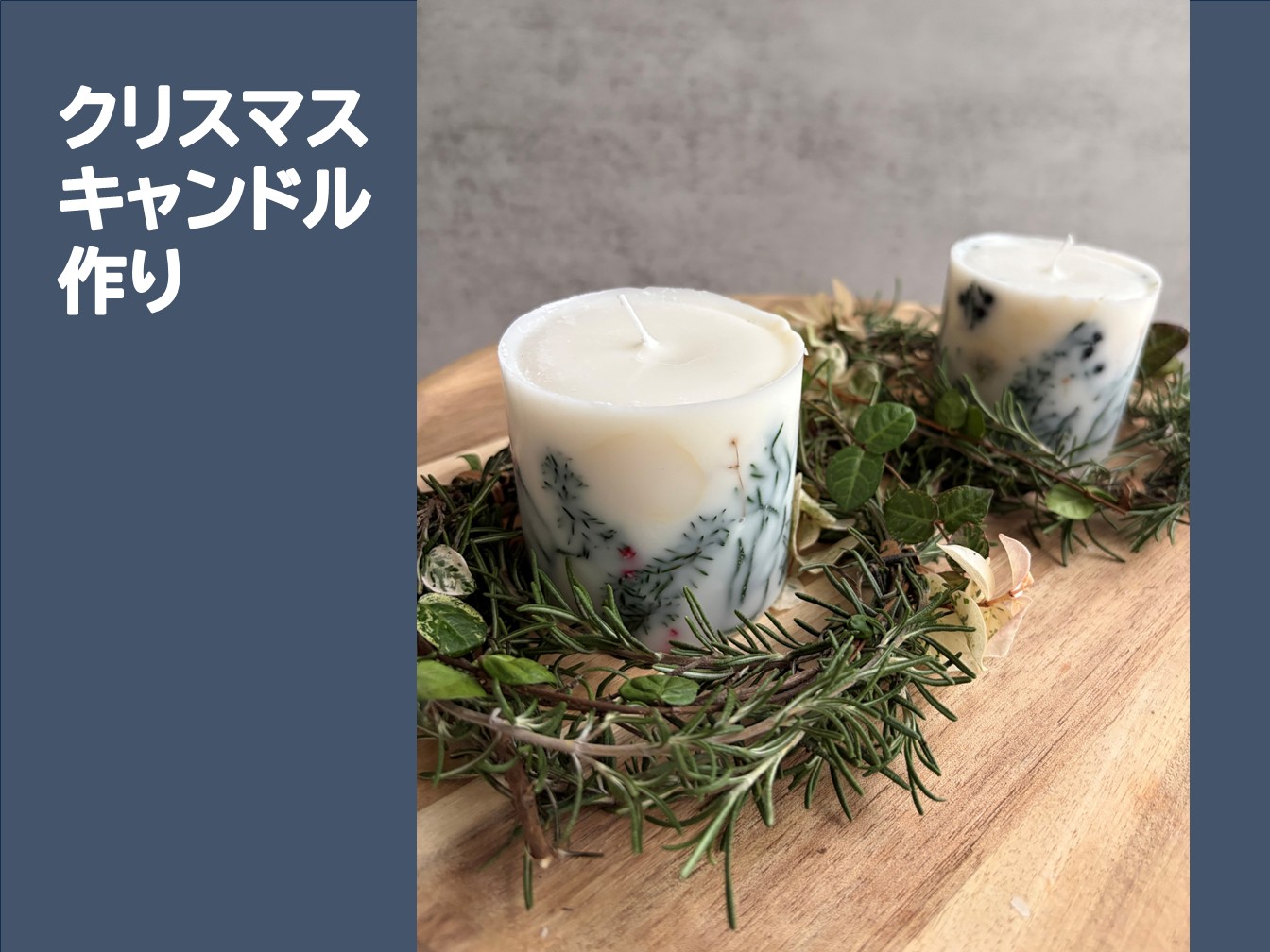 てづくりキャンドルでクリスマス🎄キャンドル周りを飾るグリーンのつみとりも