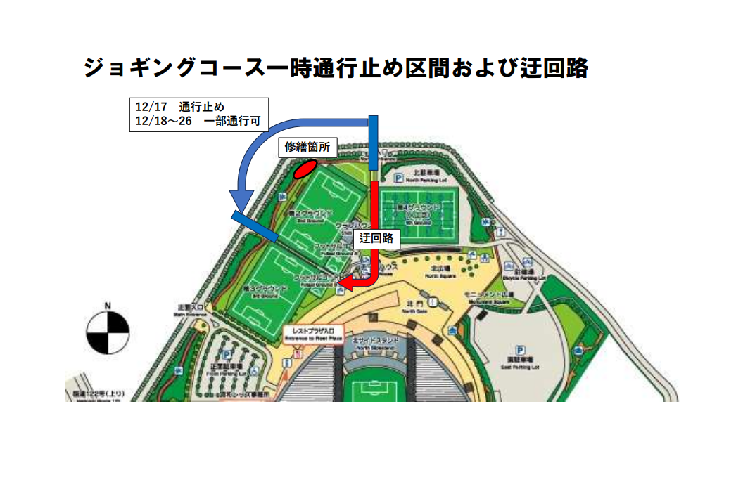 補修期間中は当該場所を全面および一部通行制限いたします。