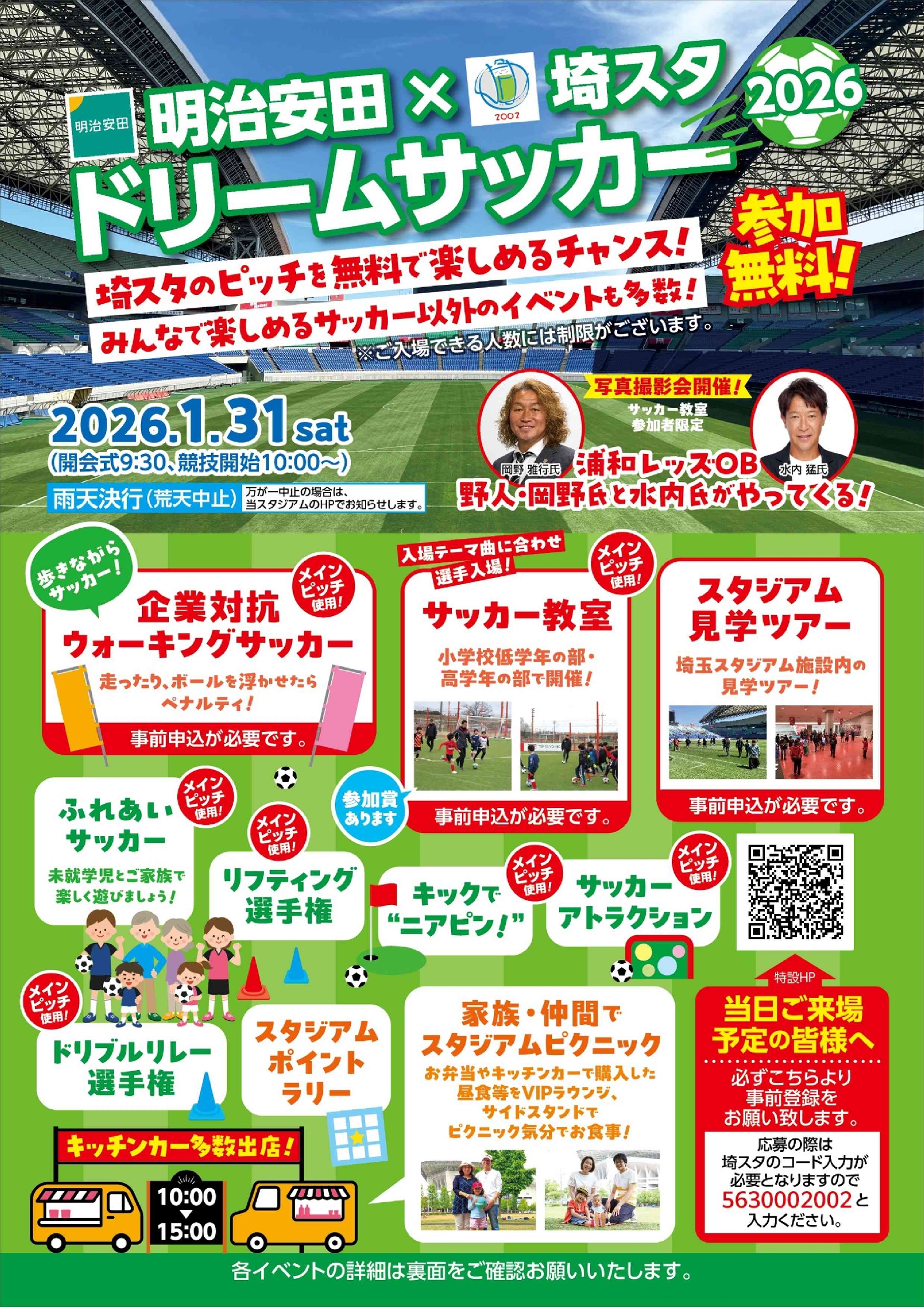 『明治安田×埼スタ ドリームサッカー』が開催します!✨