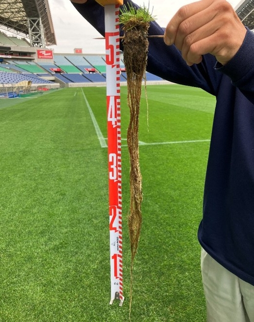 ちなみに、日韓ワールドカップの刈高基準は20~30mm、東京オリンピックの刈高基準も20~30mmと組織委員会やFIFAから設定されていました。