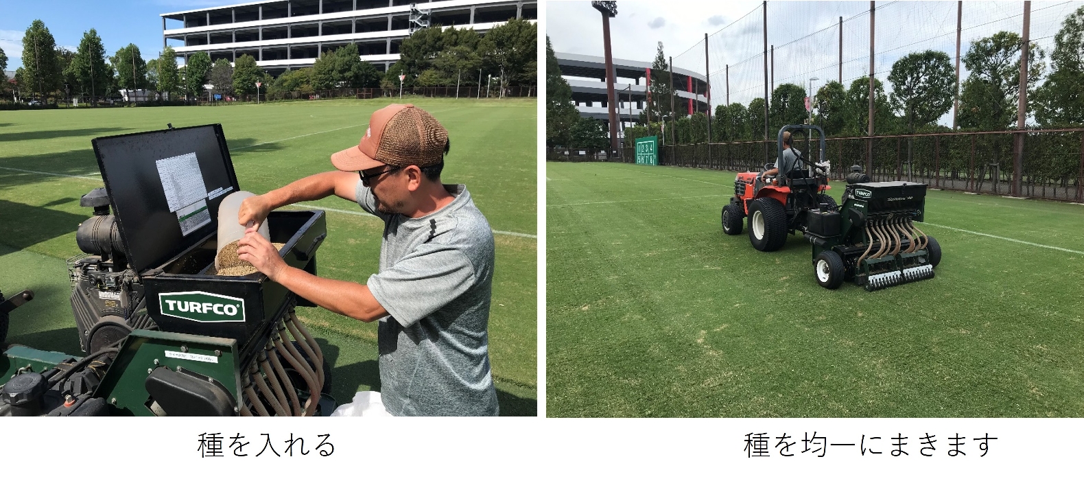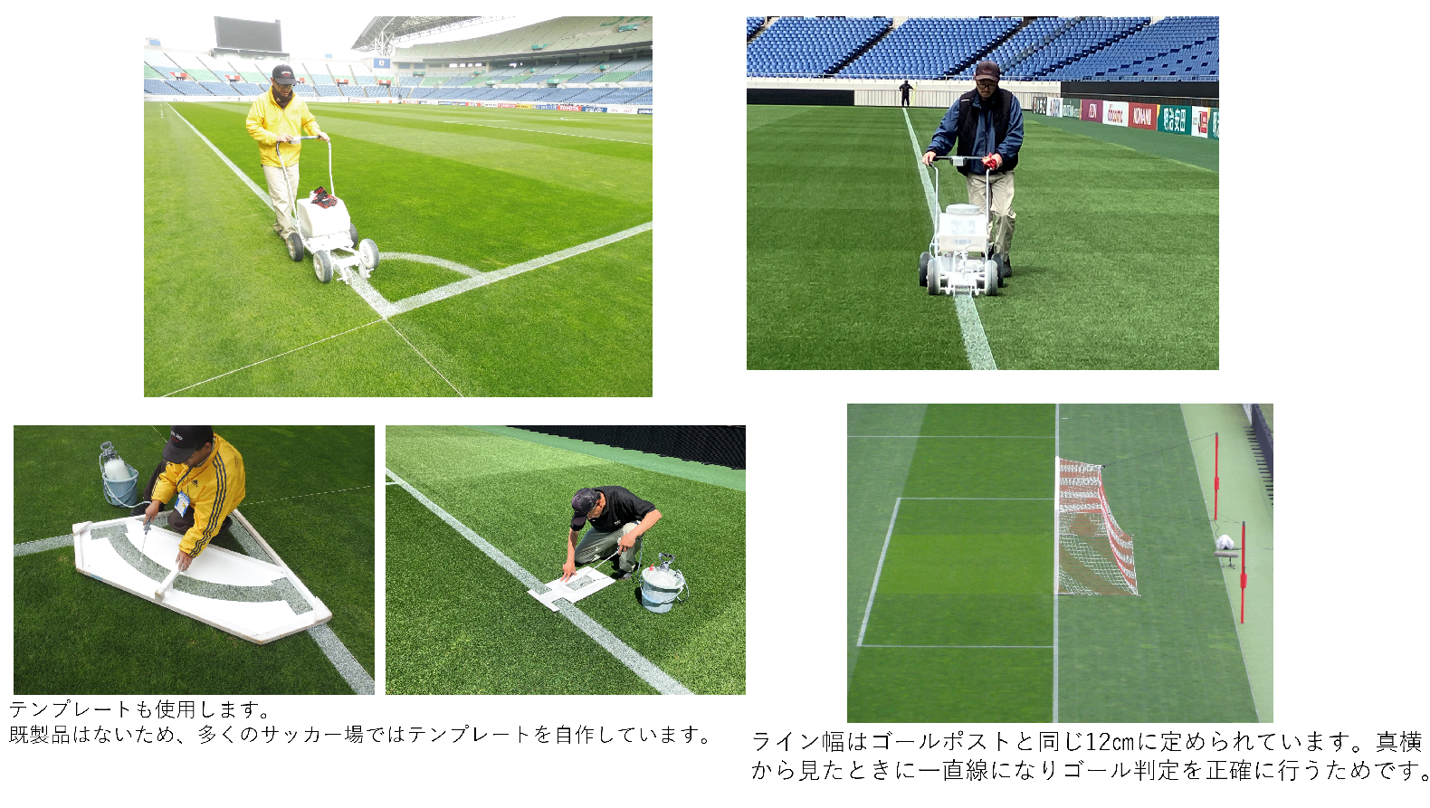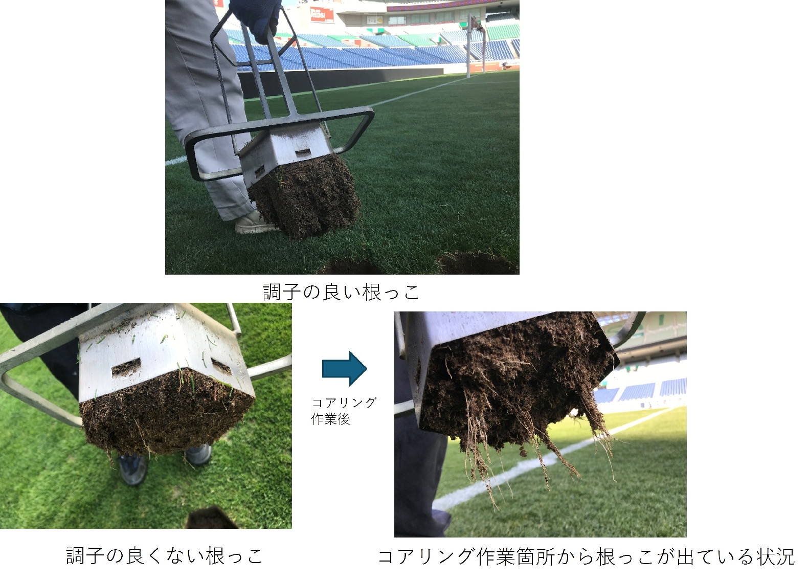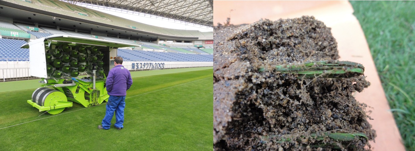 これらはサッカーグラウンドに限らず、一般家庭の庭などの芝生においても基本的に必要な作業です。