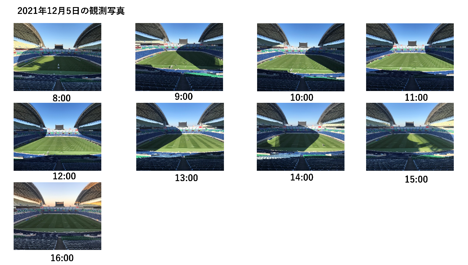 つまり、単純に屋外で観測した日照量の55%というわけではなく、スタジアム内では実際にそれ以上に深刻な日照不足に陥っているのです。
