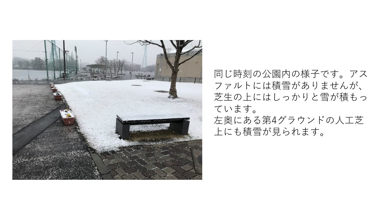 地温コントロールシステムの配管は地中に埋まっているため普段は見えませんが、効果がはっきりと目で確認できるのは雪が降ったときです。
