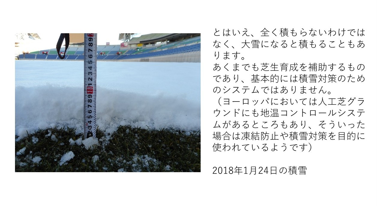 寒地型芝だから地温コントロールシステムがあるわけではなく、日本国内には暖地型芝+WOS方式を採用しているスタジアムでも、このシステムを導入している例が多数あります。気になる方は、ぜひ調べてみてください!