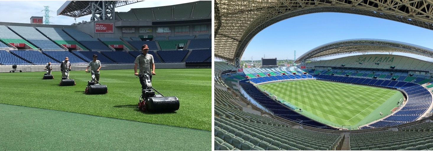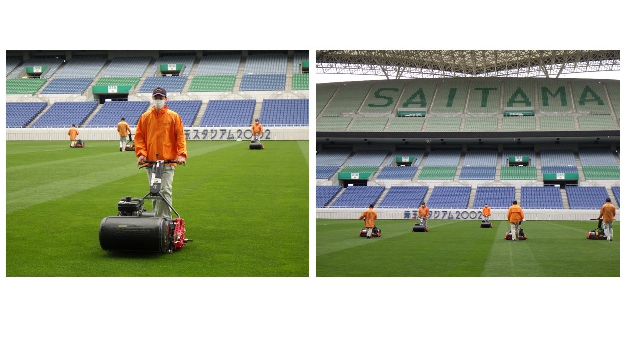 Jリーグが開催されるスタジアムにおいて、通常管理で毎回歩行式芝刈り機(グリーンモア)を使って刈り込みを行っている例は珍しく、建設当時は埼玉スタジアムのみでした。