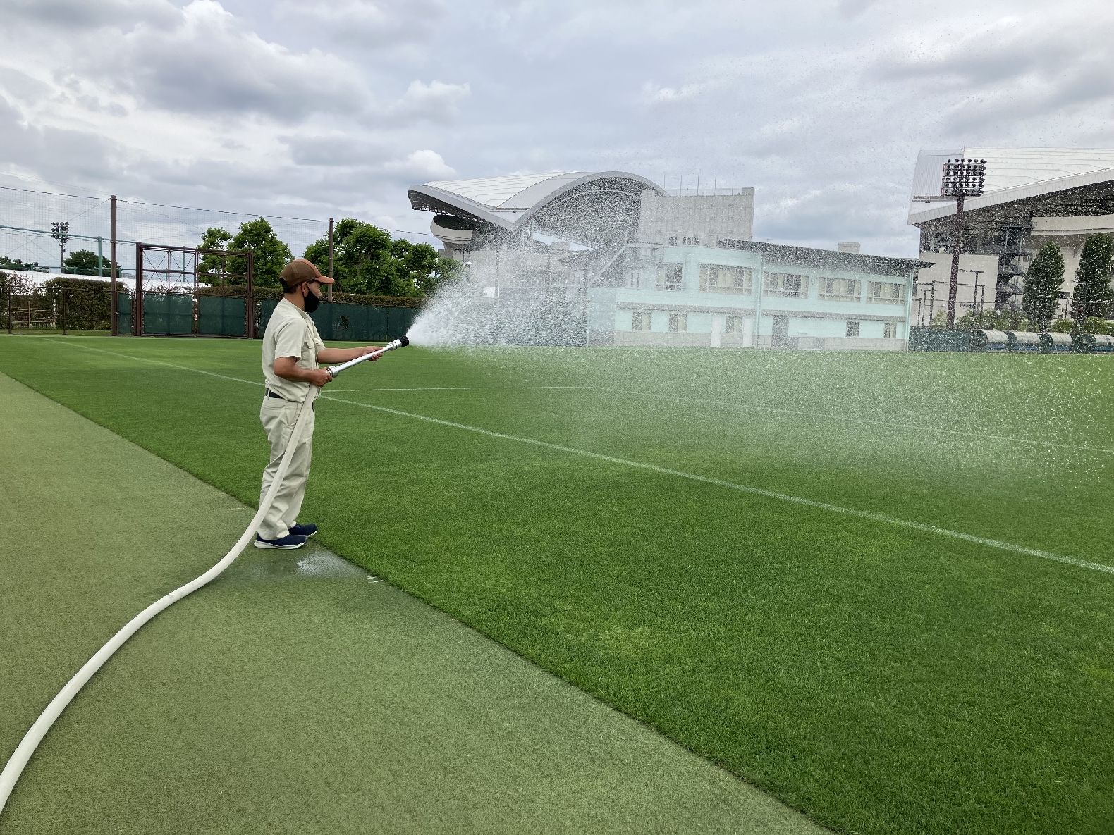 散水を行うかどうかは、その時の天候、水の残り具合、チームの意向などに応じて現場で判断されるため、非常に迅速な対応が求められます。