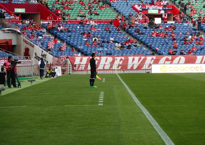 埼玉スタジアムでは、タッチラインの外側に5メートルの天然芝エリアがあります。